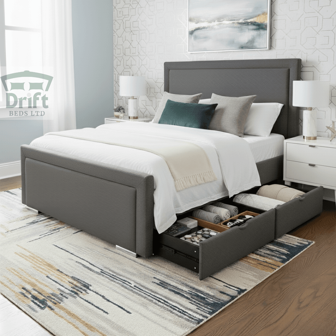 At Drift Beds, we believe that even the simplest designs deserve the highest quality construction. The Charlie bed is built upon a foundation of a robust, solid wood frame, ensuring excellent durability. The quality of the upholstery and the precision of the stitching are a testament to the skill of our UK-based artisans. This bed is a practical, stylish, and long-lasting investment for your home.